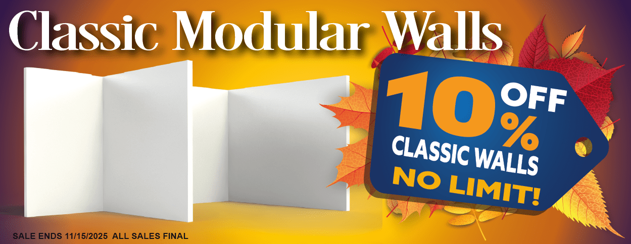 10% OFF Classic Modular Walls – Build sturdy, freestanding layouts that look and feel like permanent construction.